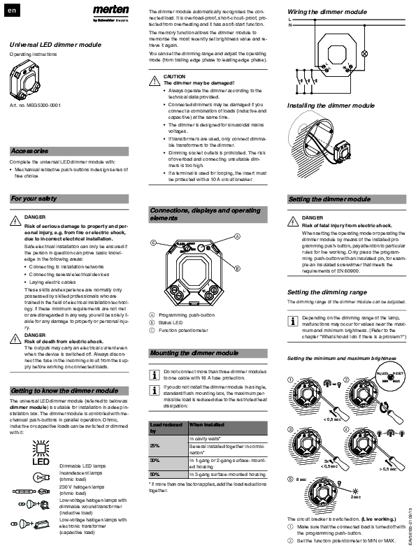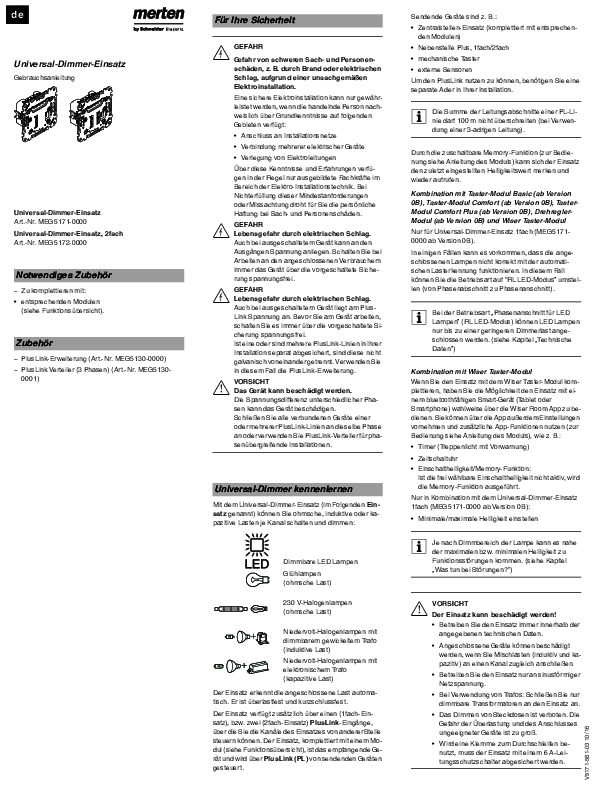 Gebrauchsanleitung Universal-Drehdimmer-Einsatz für kapazitive und induktive Last