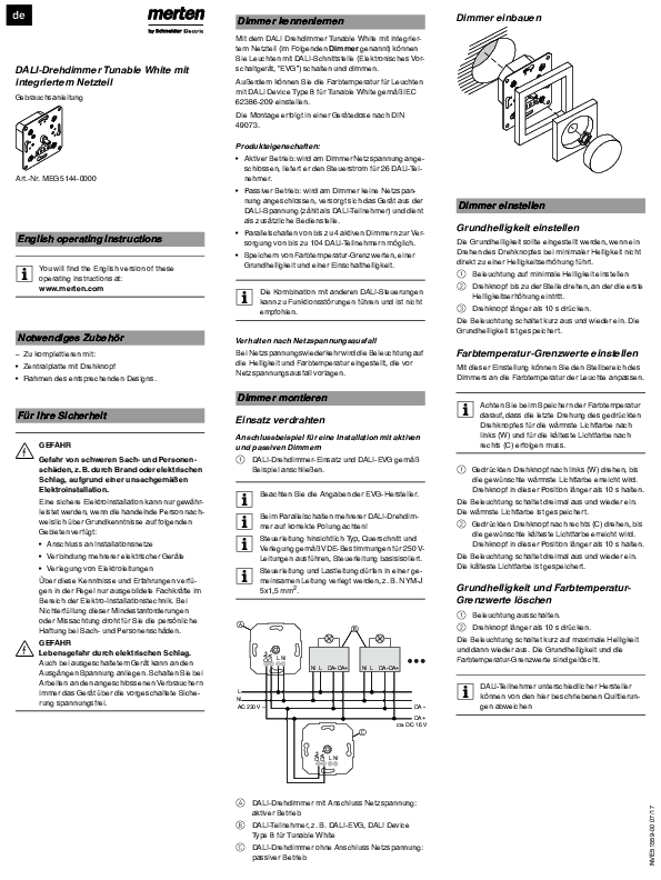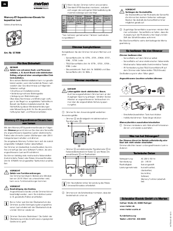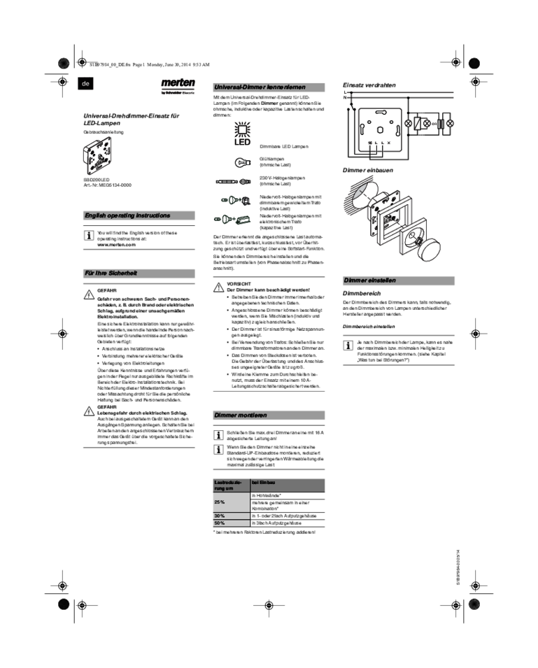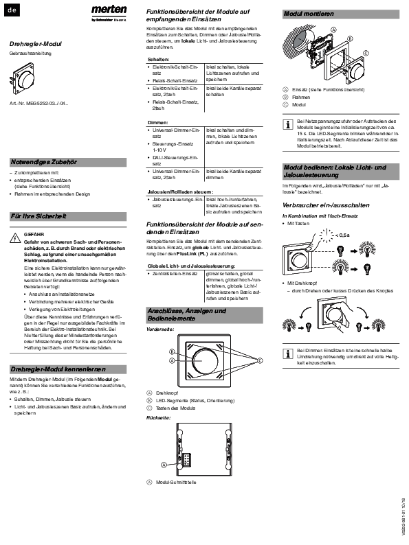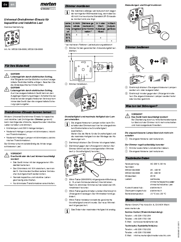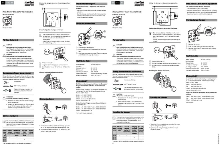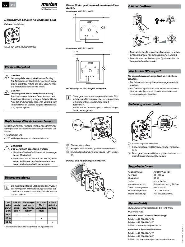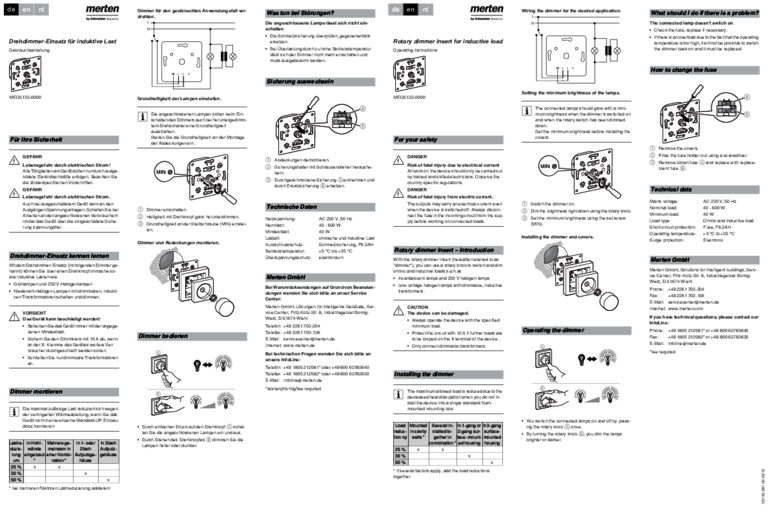 Gebrauchsanleitung Drehdimmer-Einsatz für induktive Last