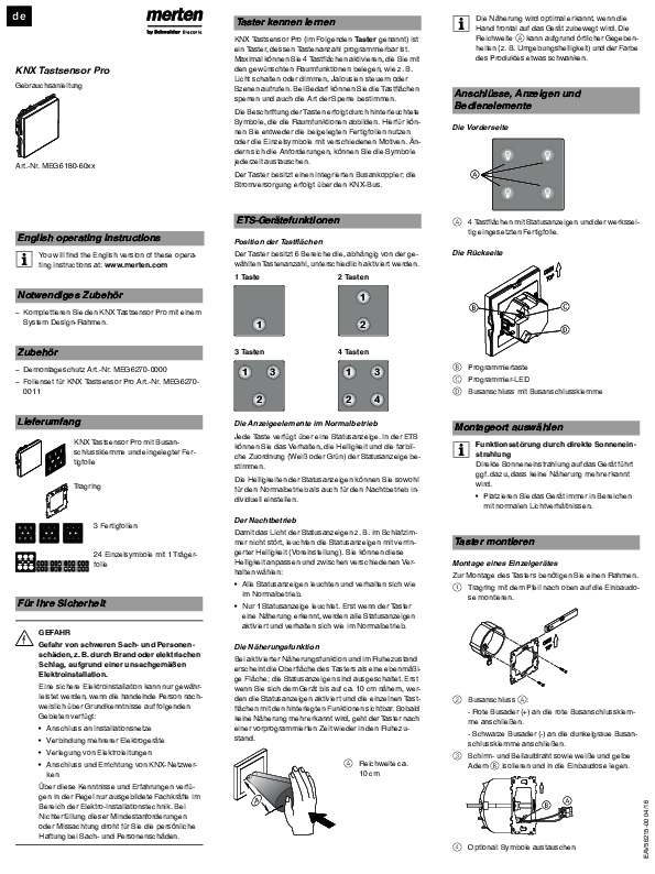 Gebrauchsanleitung KNX Tastsensor Pro System Design