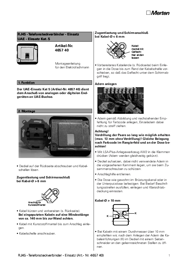 Gebrauchsanleitung RJ45 - Telefonsteckverbinder - Einsatz, UAE - Einsatz Kat. 5