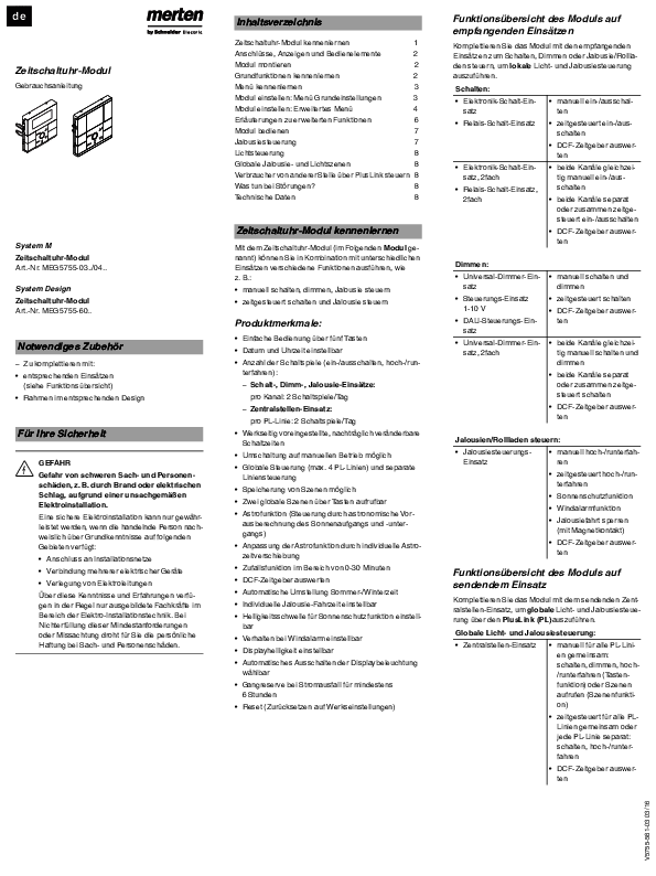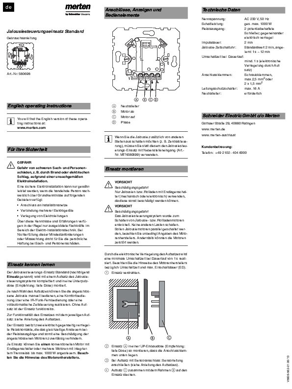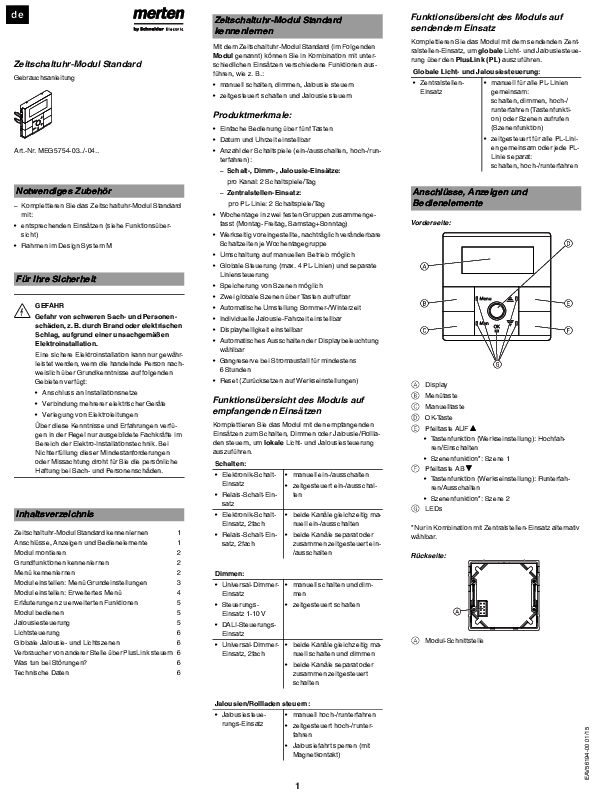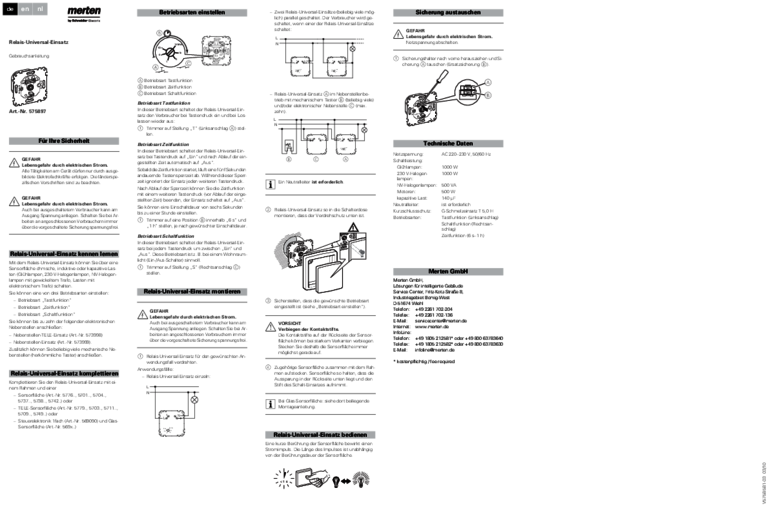 Gebrauchsanweisung SCHUKO-Timersteckdosen-Einsatz mit erhöhtem Berührungsschutz
