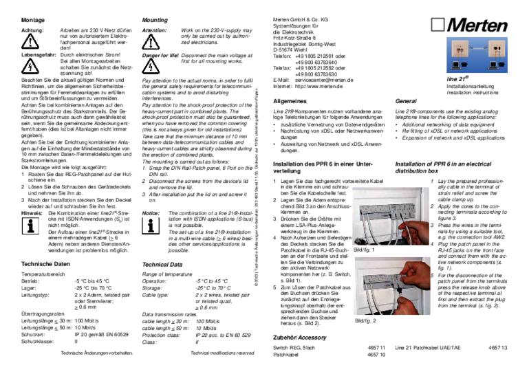 Gebrauchsanleitung Patch-Panel REG/6-fach