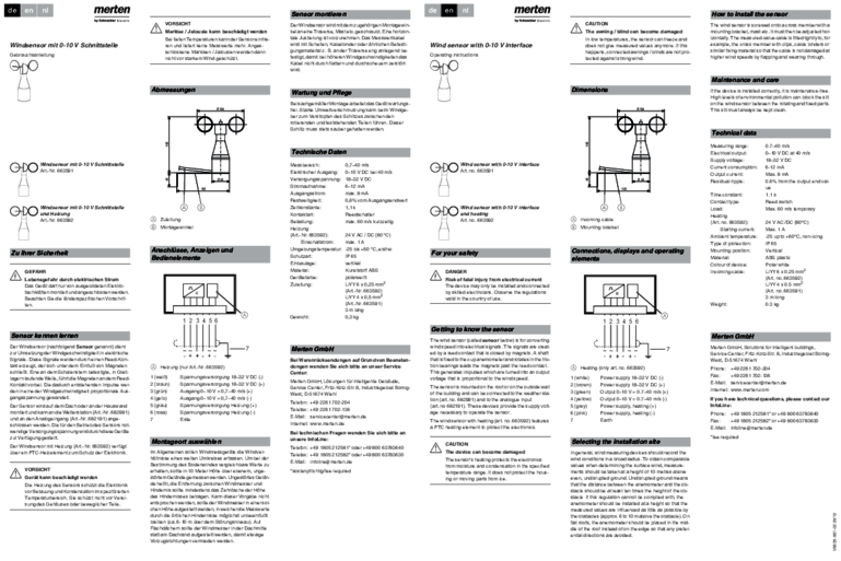 Gebrauchsanleitung Windsensor mit 0-10 V Schnittstelle
