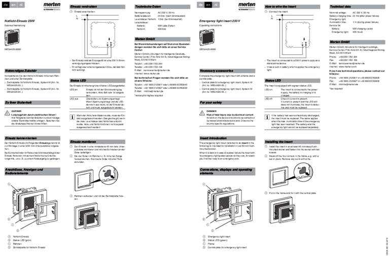 Gebrauchsanleitung Notlicht-Einsatz 230V