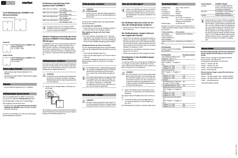 Gebrauchsanleitung Funk-Rollladentaster CONNECT mit Sensoranschluss