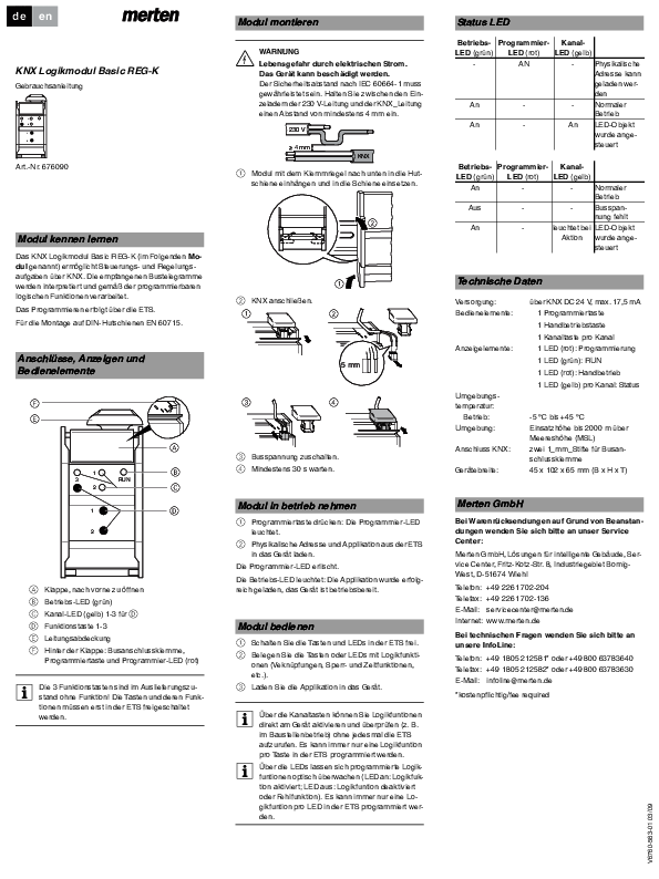 Gebrauchsanleitung KNX Zeitgeber REG-K