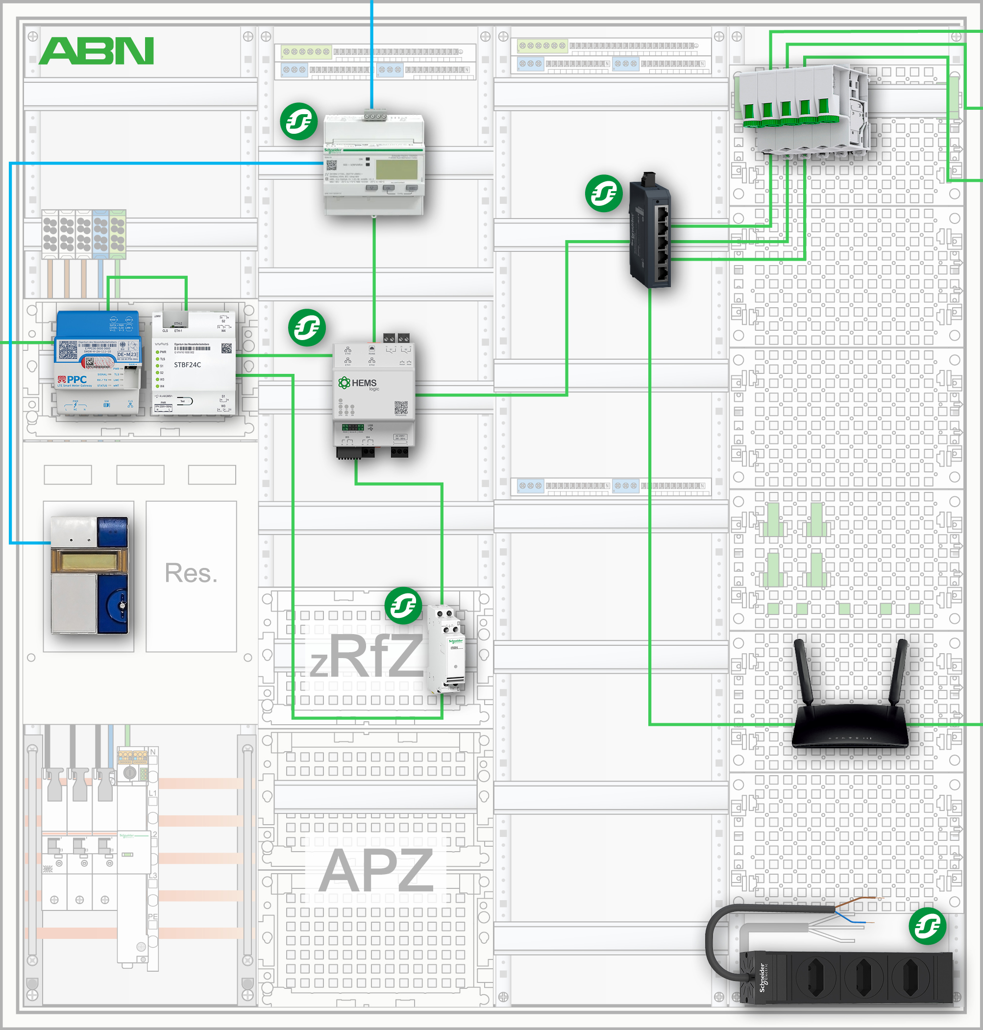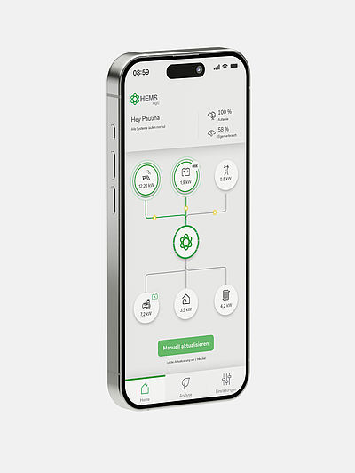 Das Home Energy Management System HEMSlogic von Schneider Electric verbindet die Visualisierung und Steuerung der Energieflüsse mit Effizienz, in dem es die im Haus erzeugte und benötigte Energie automatisiert regelt. HEMSlogic ermöglicht die Optimierung des Eigenverbrauchs und damit Kosteneinsparungen. Das Energiemanagement-Gateway regelt die Integration und automatisierte Steuerung erneuerbarer Energiequellen und schafft somit eine nachhaltigere Energieversorgung. Mit HEMSlogic kann sich das Zuhause Deiner Kunden zum Prosumer Home verwandeln!