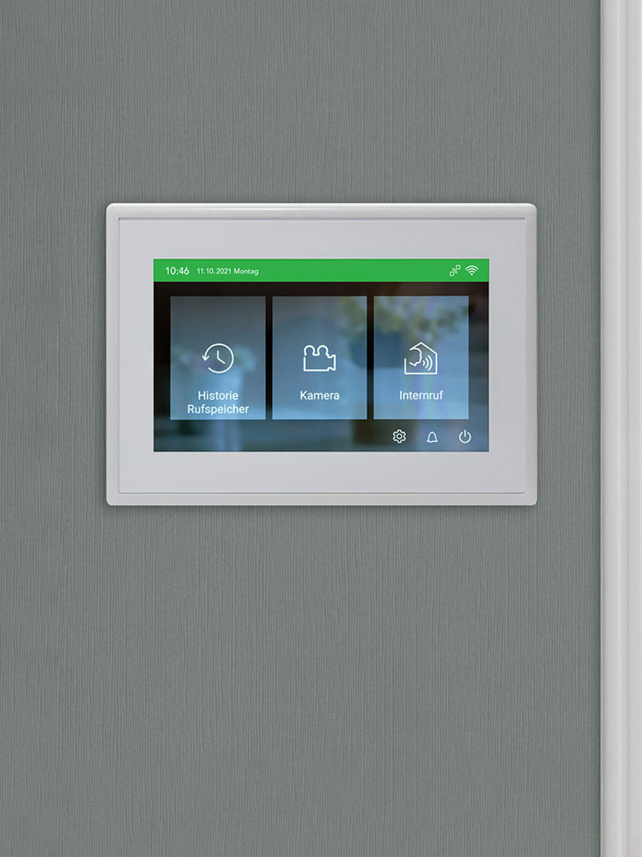 Verpasste Rufe werden in der Innenstation gespeichert und im Nachgang optisch signalisiert, auch wenn sich der Bildschirm im abgedunkelten Stromsparmodus befindet oder die Mute-Funktion aktiviert wurde.