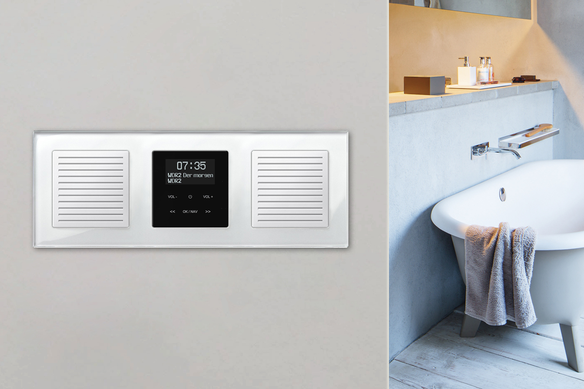 Am frühen Morgen gemütlich den Tag mit dem Lieblingssong starten und dann gut vorbereitet alle Verkehrsmeldungen im Blick haben während man sich im Badezimmer für den Tag vorbereitet. Das neuen DAB+ Radio Set mit Bluetooth von Merten überzeugt nicht nur mit seinem formschönen Design und klaren Sound. Es lässt sich platzsparend in eine Unterputzdose installieren. Störende Kabel gehören somit der Vergangenheit an und es lässt sich lässt sich optisch in alle Wohnräume integrieren.