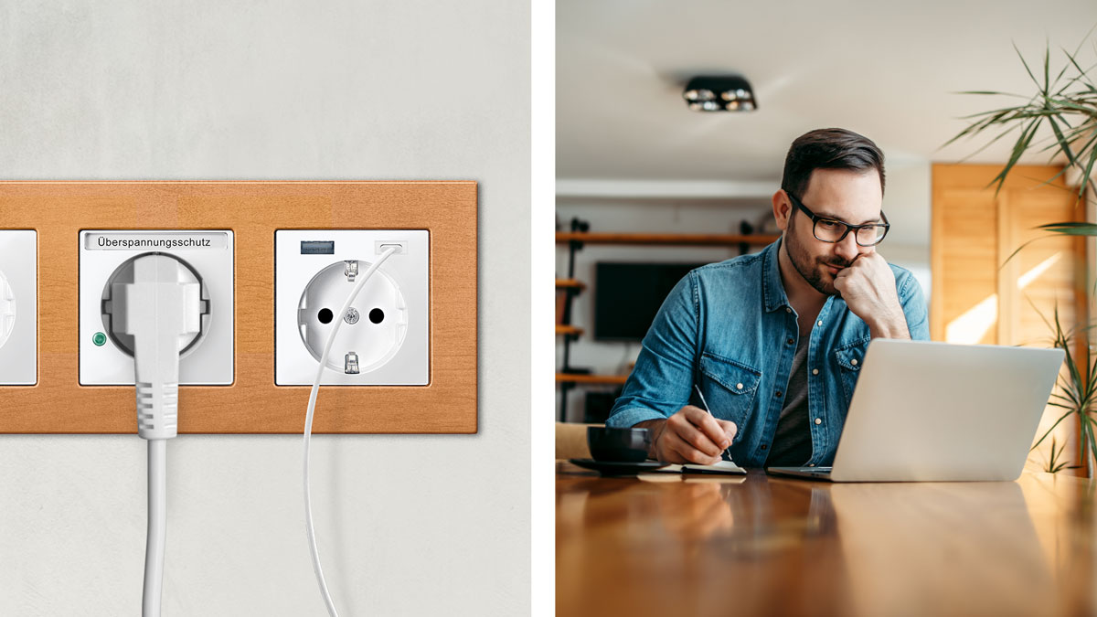 „Von zu Hause aus arbeiten? Ich mache das gerne. In meinem Arbeitszimmer bin ich ungestört und kann mich voll und ganz auf meine Aufgaben konzentrieren. Die Technik von Merten war schnell installiert und ist kinderleicht zu bedienen. Dadurch spare ich Zeit und Energie.”