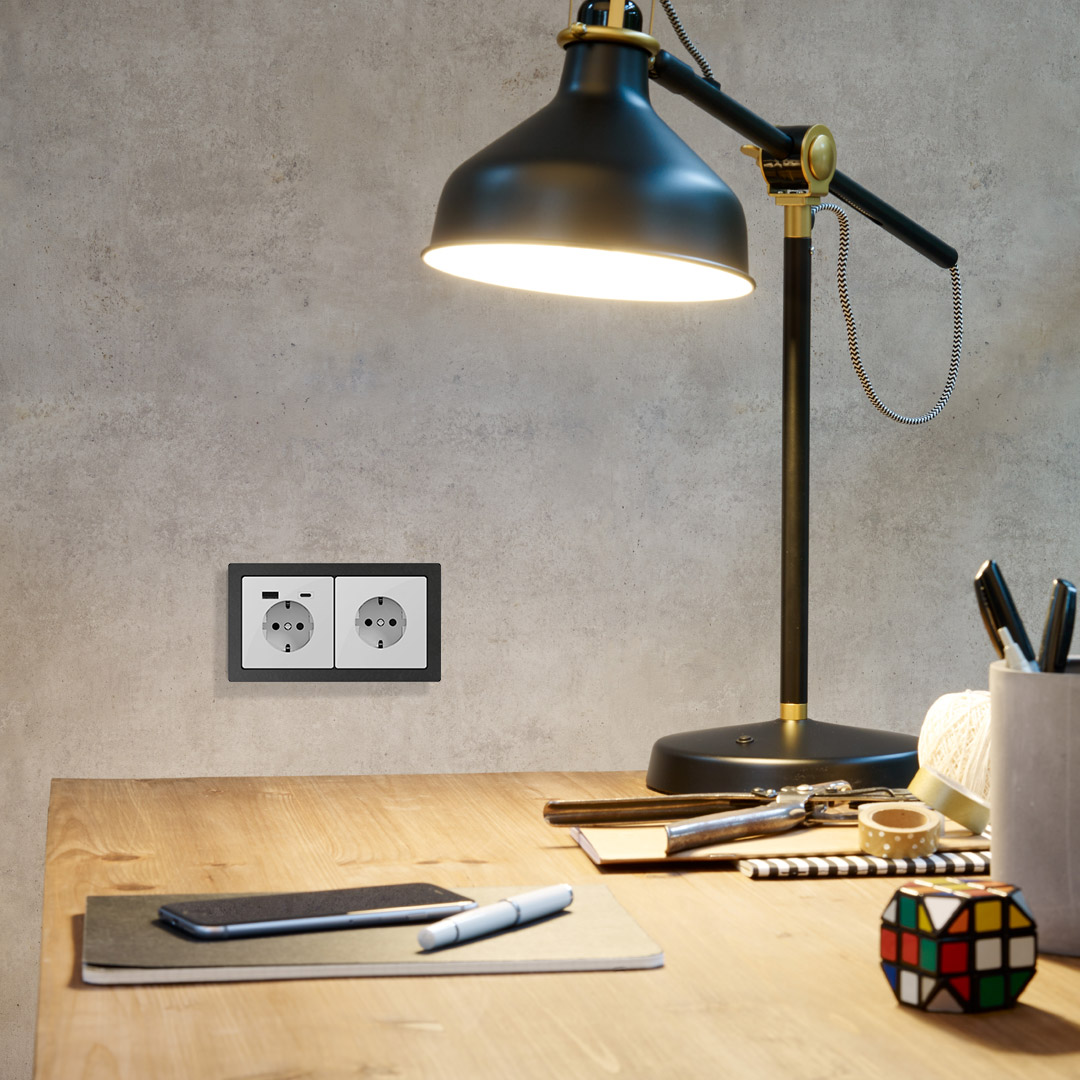 Auch im Home Office sind deine Kleinen nicht weit entfernt. Deshalb sollten auch hier bodennahe Steckdosen mit erhöhtem Berührungsschutz ausgeführt werden. Bei gewohnt bequemer Bedienung öffnet sich die integrierte Verriegelung ausschließlich bei gleichzeitigem Druck auf beide Öffnungen – erhöhter Berührungsschutz für ein Plus an Sicherheit, wenn Kinder auf Erkundungstour gehen.