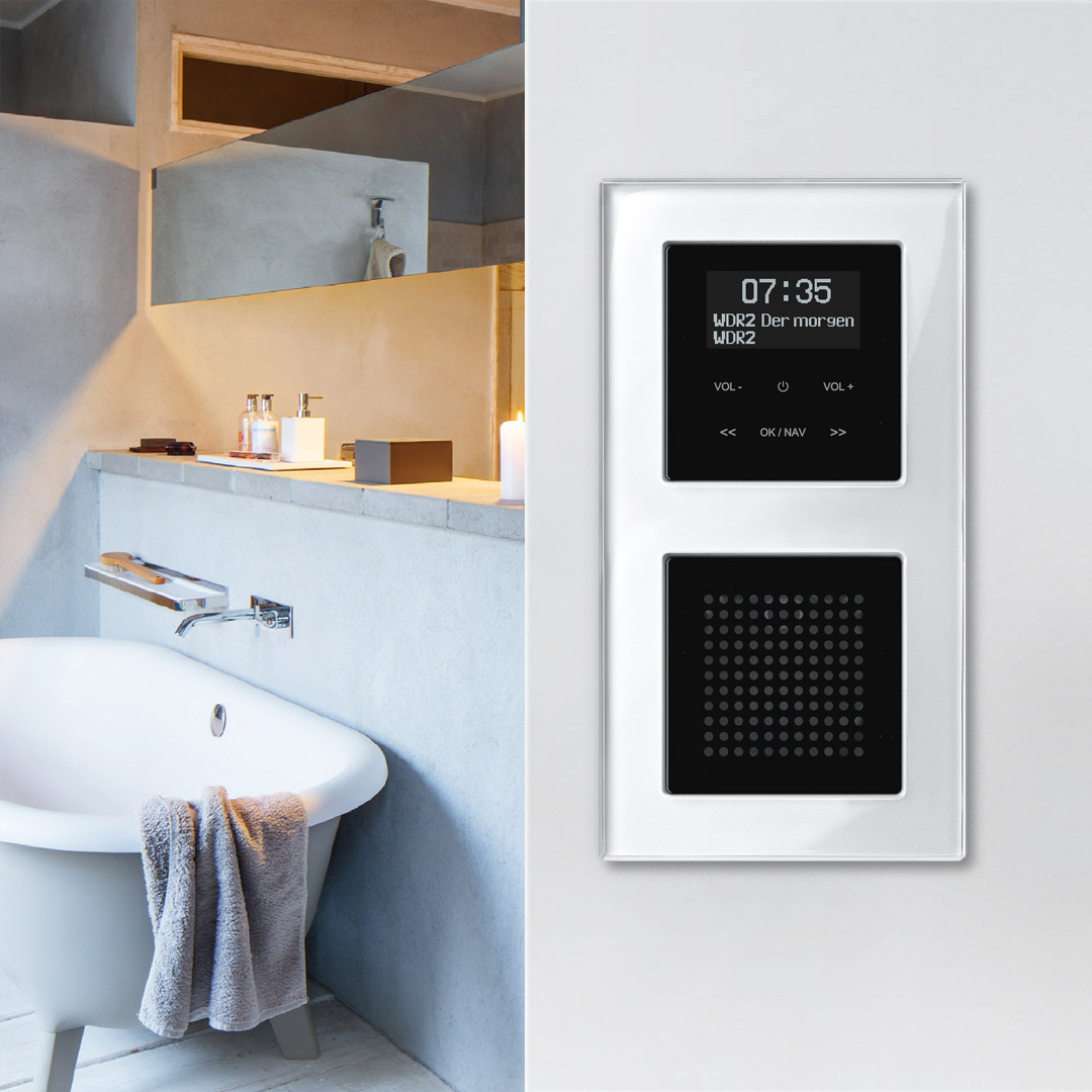 Platzsparend in einer Unterputzdose im Badezimmer installiert, kannst du mit dem Radio Set schon morgens unter der Dusche deine Musik per Bluetooth streamen oder über deine favorisierten DAB+ und UKW-Radiosender die tägliche Dosis Nachrichten erhalten.