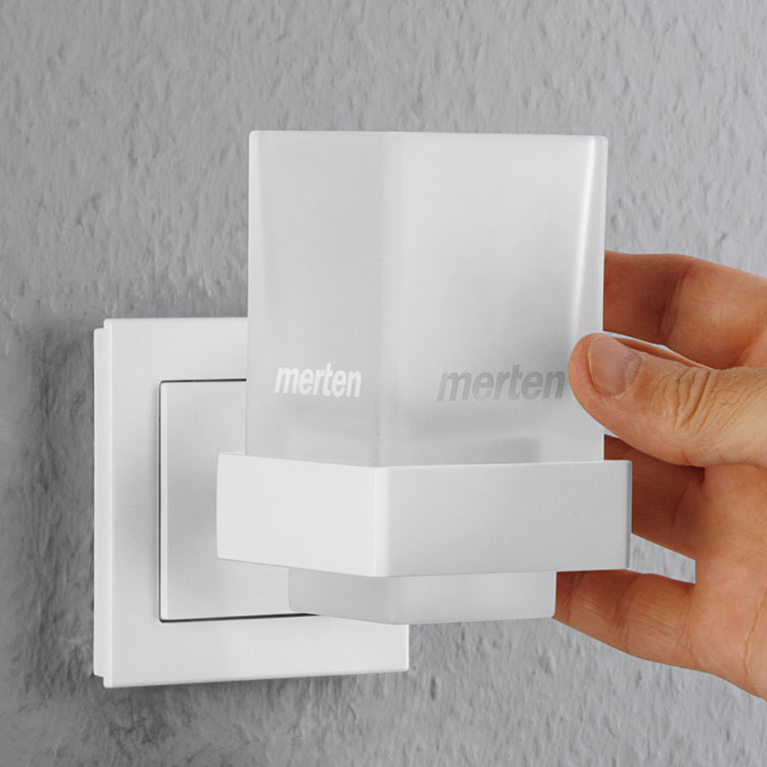 Langweilig war gestern: Kombiniert mit den Rahmen von System M oder System Design werden der qles Seifenspender und das Wasserglas zum Blickfang in deinem Gäste-WC. Sie lassen sich komfortabel über die qles Flex-Base montieren und mit dem qles Steck-System an die Stromversorgung anschließen. Die Farben der Badhalter und den Deckel des Lotionspenders stimmst du einfach auf dein Merten Schalterprogramm ab.